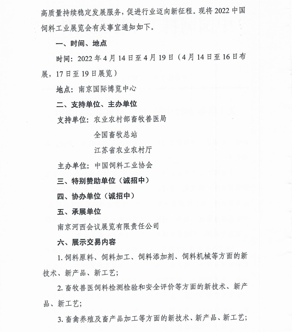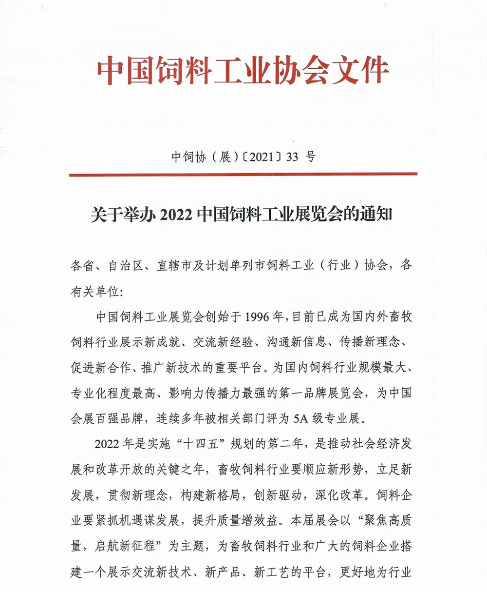 关于举办2022中国饲料工业展览会的通知