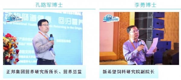 中国农业大学李德发院士、浙江艾杰斯生物科技有限公司潘宏涛董事长、华南农业大学博士生导师冯定远教授、安迪苏公司中国区肠道健康产品经理张博博士、思来生物产品经理雷蕾、丹麦科汉森高级技术经理Jean-Christophe Bodin、河南新逻辑营养生物技术有限公司刘俊奇博士分别带来了《浅谈肠道健康研究进展》、《发酵溶菌酶调控肠道健康及其在畜禽养殖中的应用》、《无机金属离子抗菌材料抗菌机理及替抗中应用》、《畜禽肠道微生物调节中枯草芽孢杆菌的选择与功效机制》、《微生物与肠道健康问题防控》、《为什么稳健的肠道菌群是预防疾病爆发的关键?》、《仔猪奶肠到料肠转换的营养逻辑》的报告并与现场嘉宾进行了精彩互动。