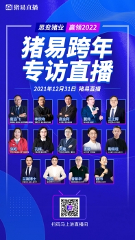 2021-2022年猪易传媒跨年专访直播,2021年12月31日19:30特邀猪业领军企业高层领导、专家大咖一起“思变猪业,赢领2022”,分享对养猪业发展变化之势“看法”,建言2022重点突破“干法”,共探猪业长远发展之路“走法”。