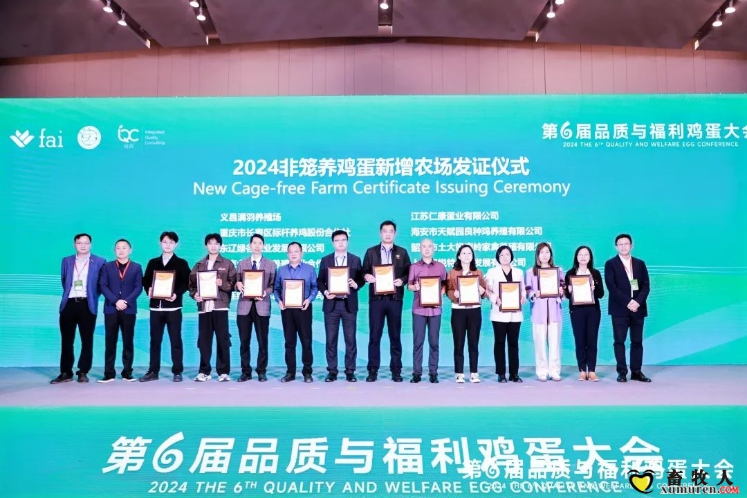 本次大会有11家新增企业荣获非笼养证书,截至目前,已经有27个农场成功获得认证,解放的总蛋鸡数量高达794,100羽,非笼养鸡蛋的产能也突破了2.4亿枚,以下附上2024年中国福利鸡蛋采购推荐清单。公众号后台私信小编,索取免费电子资料。