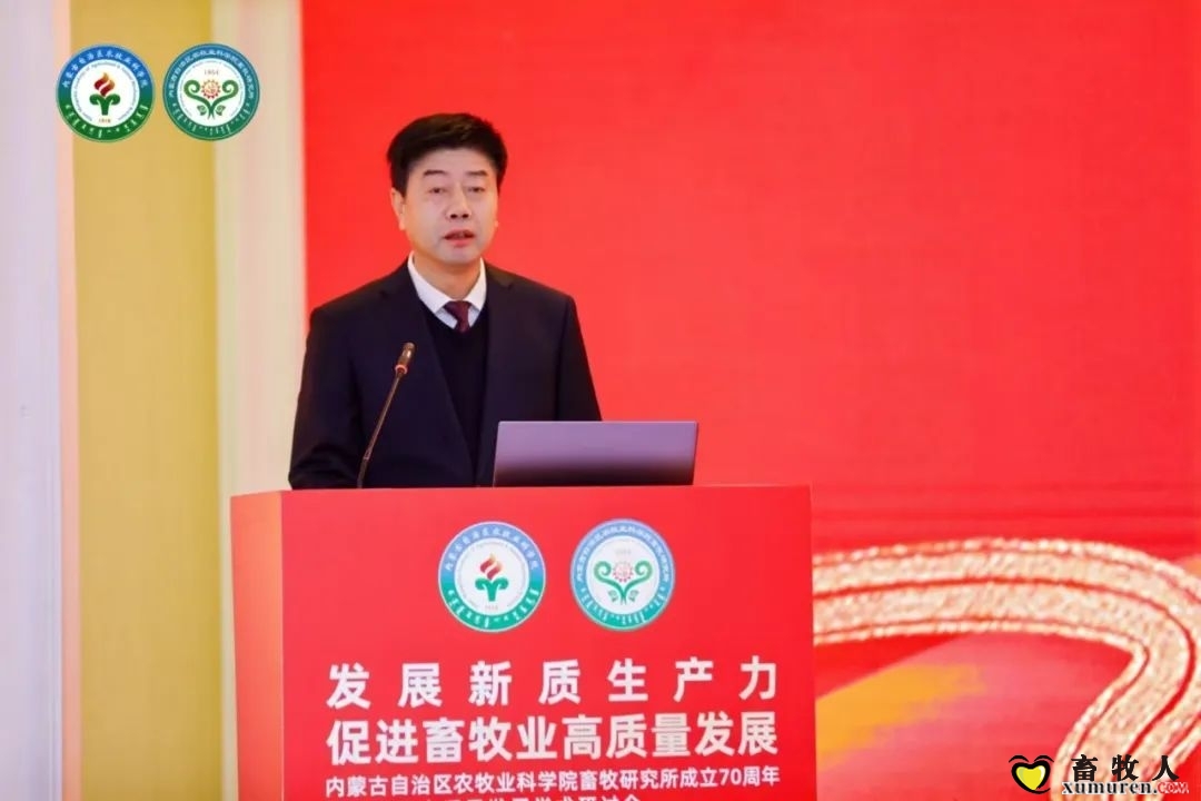 内蒙古自治区科学技术协会副主席赵远亮在讲话中强调,畜牧研究所70年来始终坚守科学精神,深耕畜牧领域,为自治区农牧业现代化进程做出了不可磨灭的贡献。特别是在遗传繁育、品种改良等方面取得了显著成绩,推动了家畜育种理论和技术的不断进步。他指出,科技是农牧业高质量发展的核心驱动力,畜牧所作为科技创新的主力军,攻克了众多技术难题,为全国畜牧业发展提供了强有力的技术支撑。站在新起点,赵副主席期待畜牧所传承优良传统,深化产学研用融合,提高科研成果转化率,积极应对全球畜牧业发展新趋势,拓宽研究领域。同时,注重科技成果普及,通过科普教育和技术培训,提升农牧民科技素养,筑牢农牧业现代化发展根基。