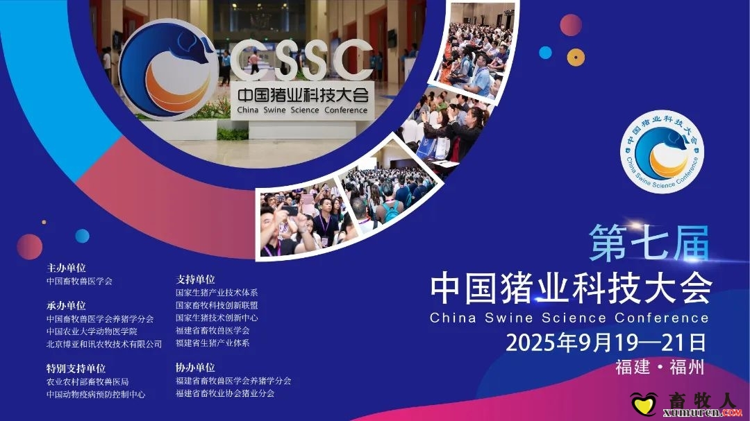第七届中国猪业科技大会(CSSC 2025)”将于2025年9月19—21日在福建省福州市举办,同期同地举办“中国畜牧兽医学会2025年学术年会”。